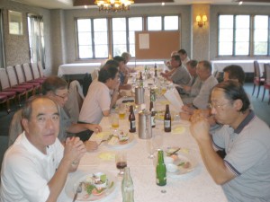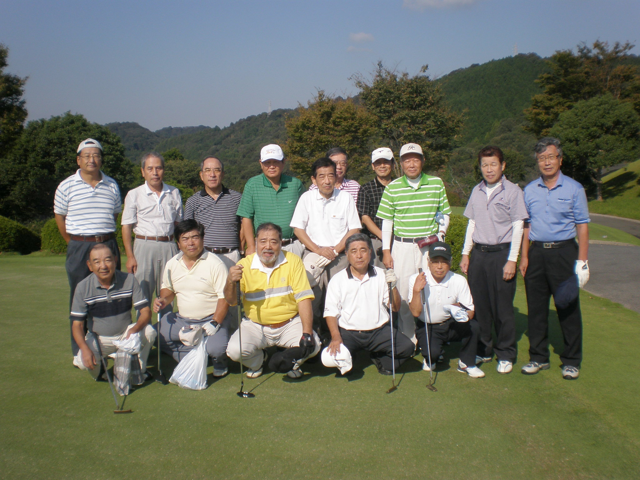 天候に恵まれ、参加者全員胸に”優勝”の一字を秘めてスタートしました。最近では珍しくキャディー付きのラウンドであったので、無邪気にからかいながら、しかし適切なアドバイスを受けながらプレイ。前宣伝では平坦で高齢者向きという看板に反して、アップ、ダウンがありタフなコースでありました。その中、堅実なプレーをし優勝経験者でもある山田雄三さんが2アンダーで優勝、ロングヒッターに挟まれながらも手堅く纏めた野口武男さんが準優勝でした。成績表は成績社14回