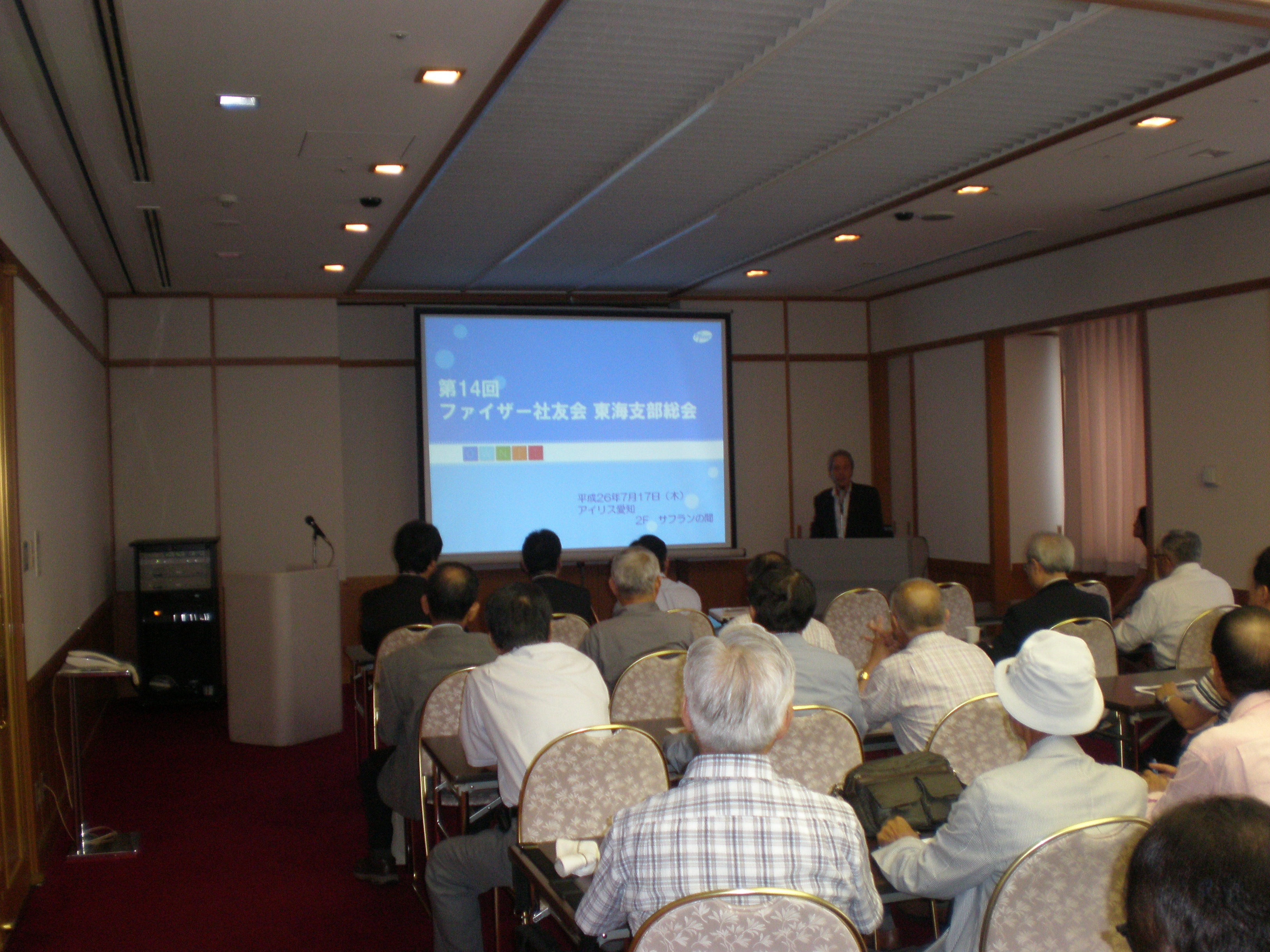 今は全国的にサウナに入った様な、うだる、蒸し暑い毎日が続いておりますが、その幕明けを感じさせる7月17日(木)平成26年度の東海支部総会は開催されました。出席者は当初予定された34名でしたが、諸々の事情により31名でした。