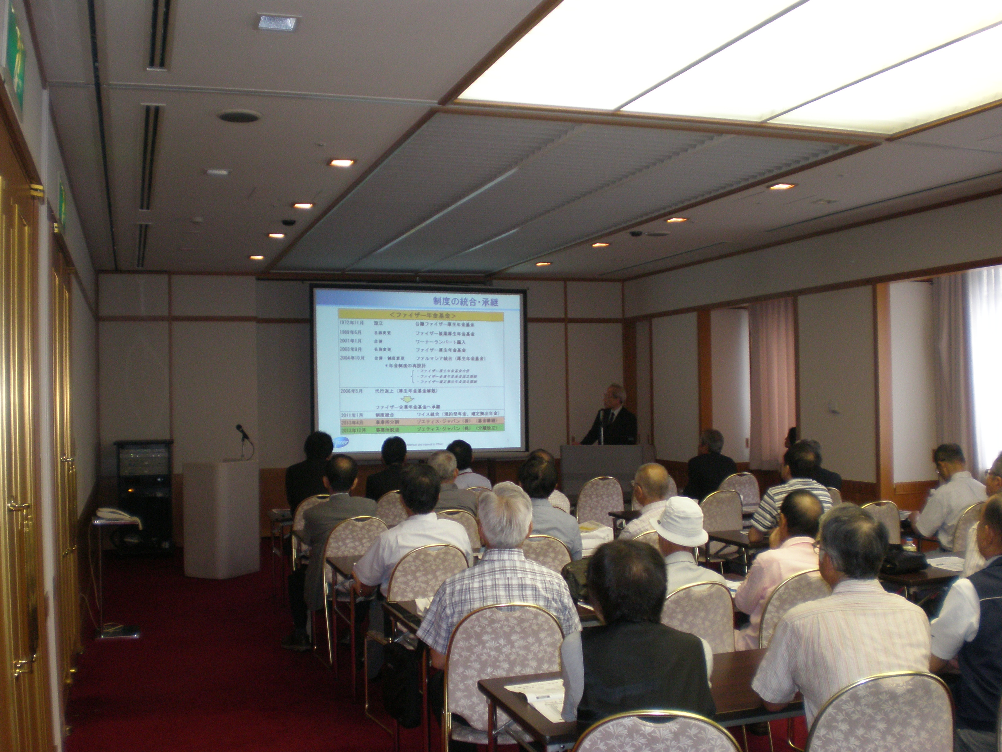 最後はやはり、我々の関心事の企業年金の現状が熊倉理事から。現状は非常に良好な状態である旨の説明を聴き、参加者一同ほっとしました。