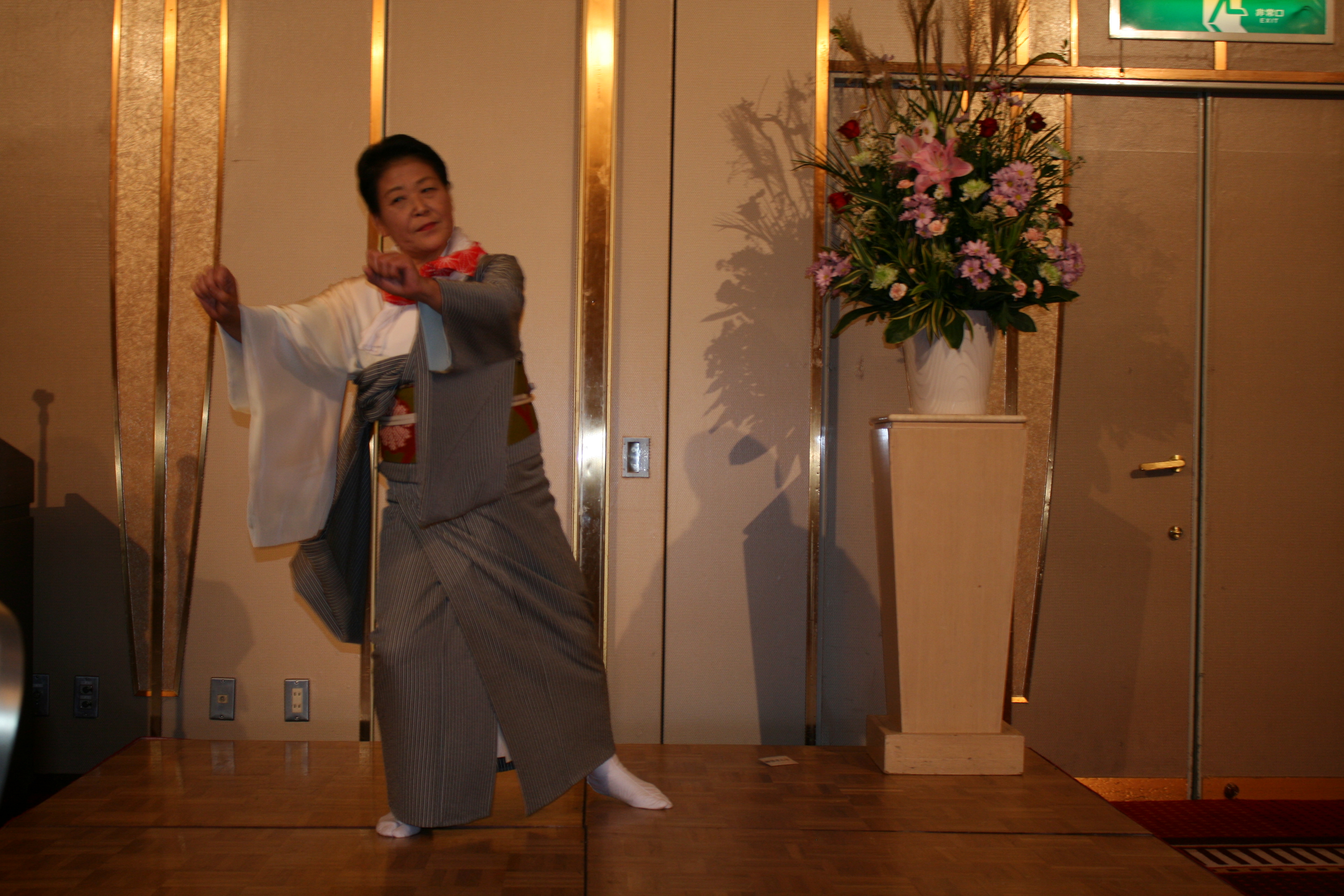 懇親会では、平井輝生さんによる乾杯の挨拶に始まり、中締めでの万歳三唱の音頭は川地吉貞さんに取って頂きました。また、余興では榊原きん子さんによる日本舞踊も披露されました。