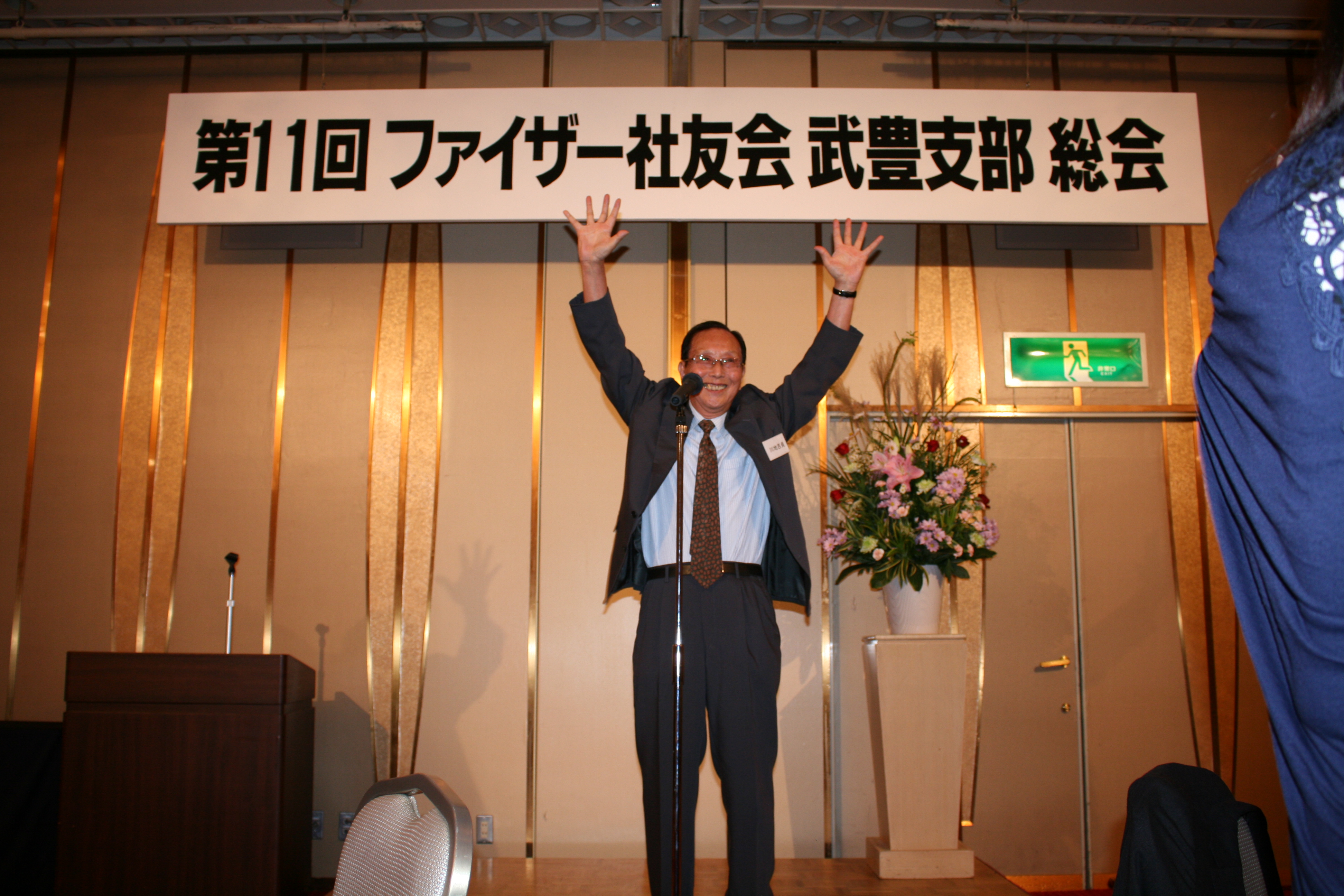 来賓に社友会会長佐藤忠夫さん、ファイザー・ファーマ社長伊藤雅彦さん、年金基金常務理事平井さんをお迎えし、盛大に、そして和やかに開催されました。支部会員においても、遠くは九州福岡から榎垣一憲さん、東京から谷口準さん、平井輝生さん、佐藤欣治さん、関西から北浦良彦さん、粕本源成さんも参加して下さいました。出席者総数は121名でした。