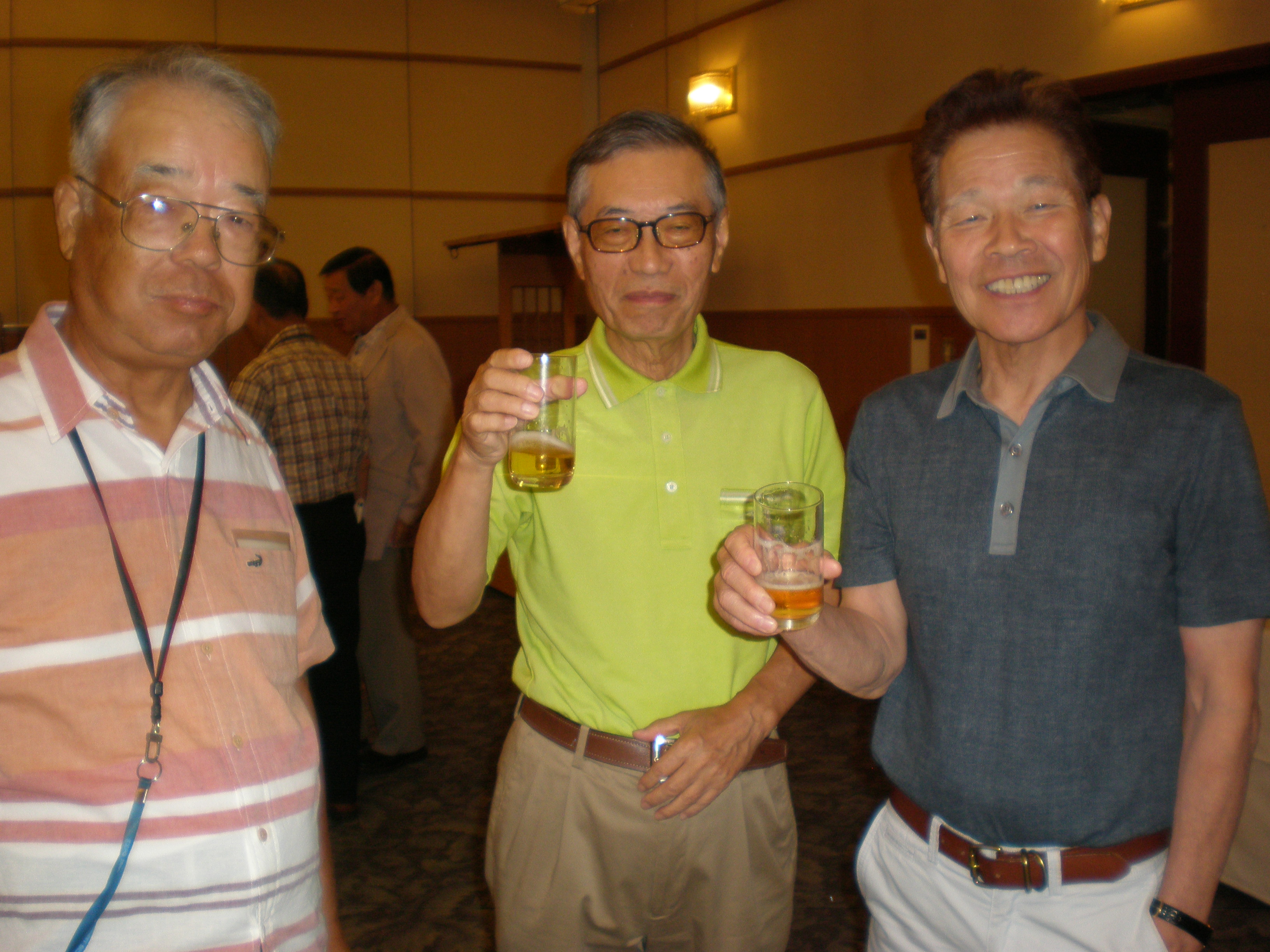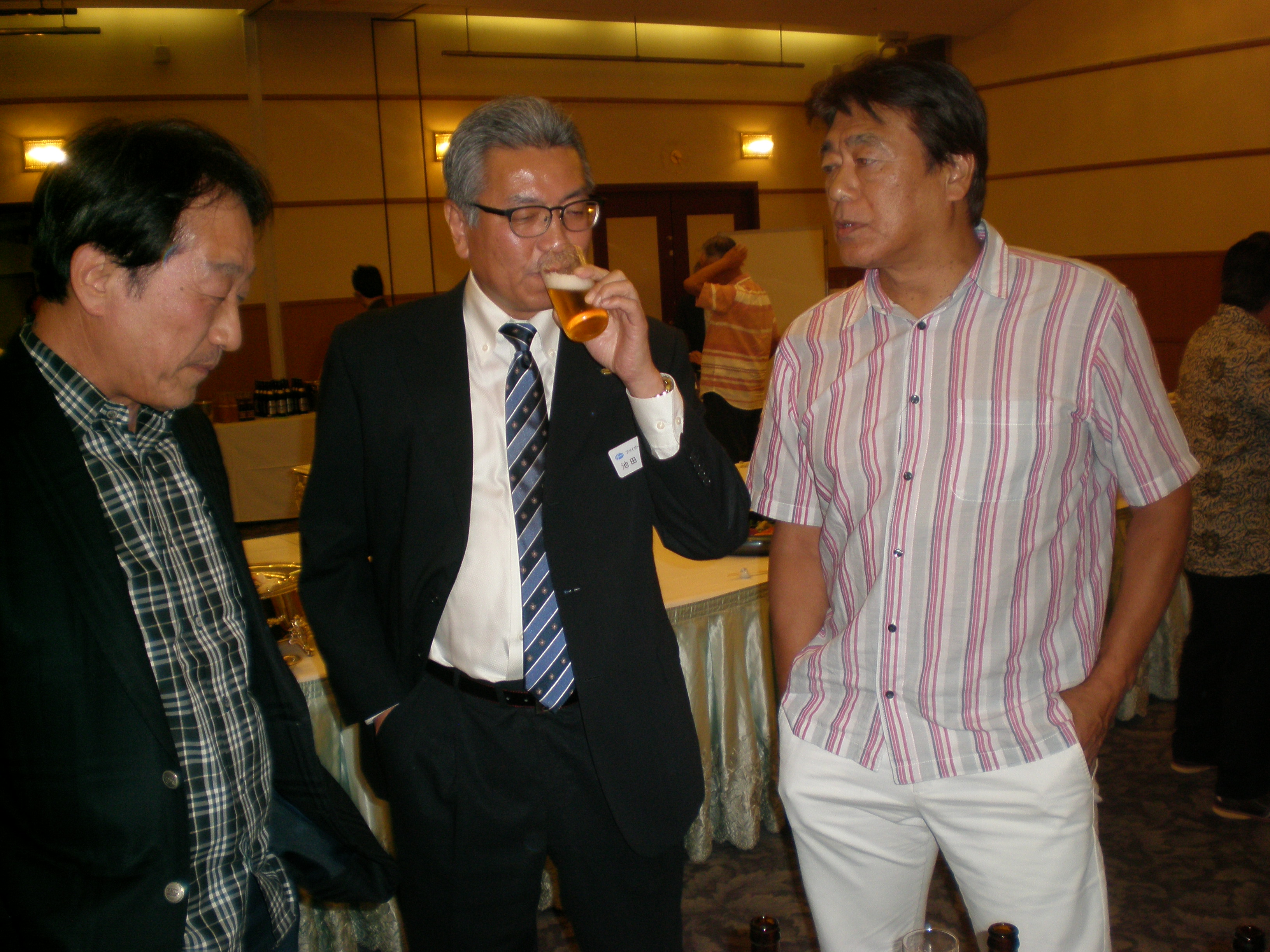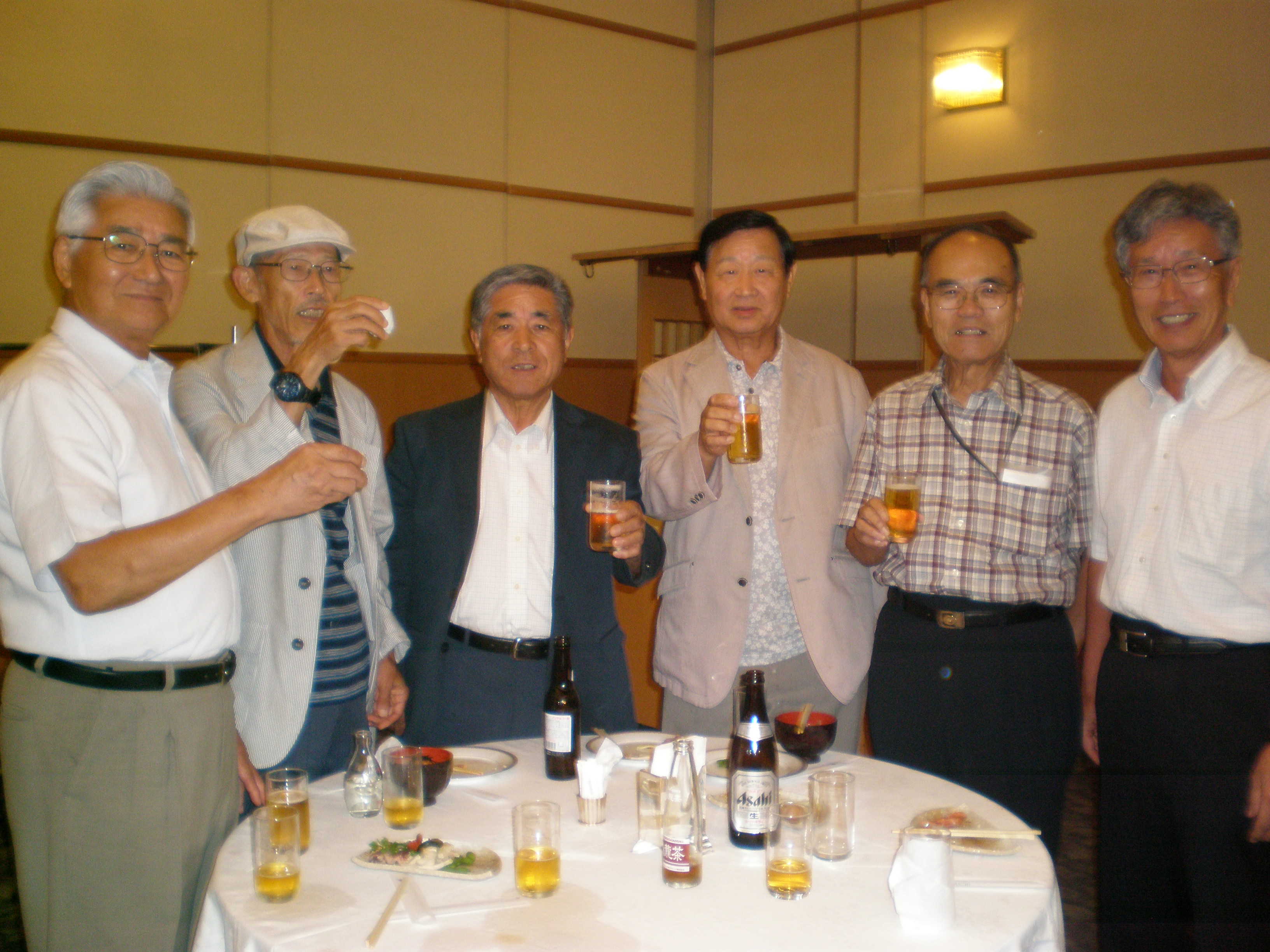 最後はやはりこれで締める懇親会へと。皆さんはここで、久しぶりの再会を期して大いに談笑するのが楽しみなのです。その風景を撮りながらテーブルを回りましたが、本当に楽しそうに談笑してました。カメラを向けると、ポーズを取るのは決して忘れてないです。以下その風景です。