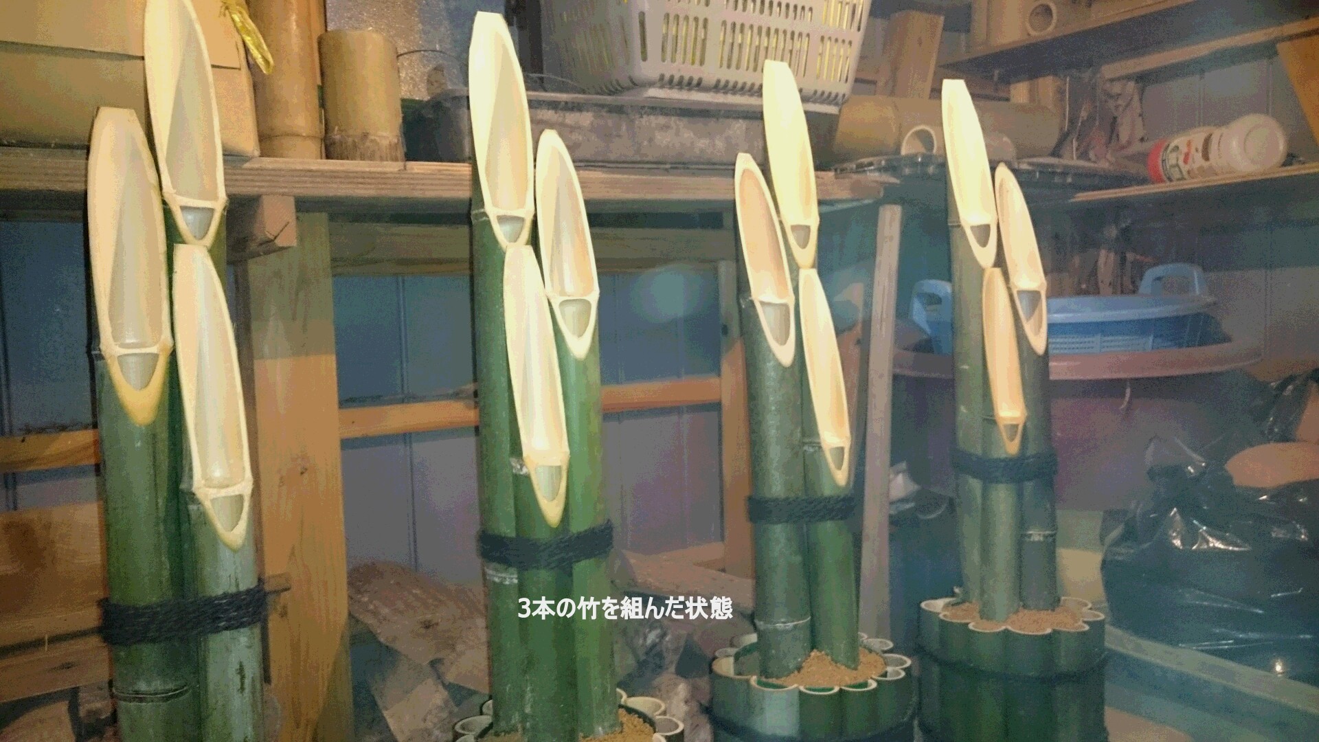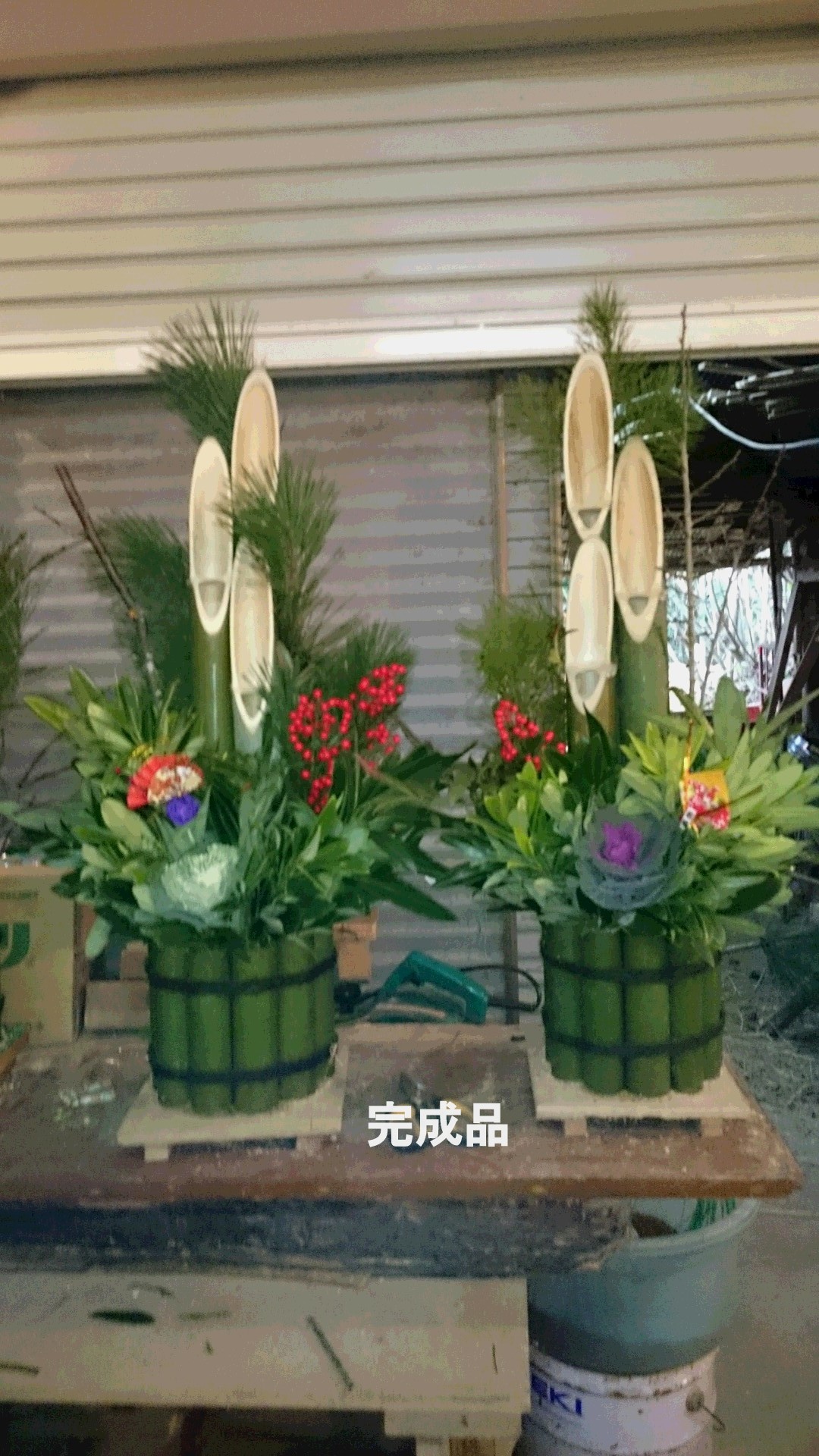 退職されたのち今から3年ほど前、親戚の方が本格的な門松作りをされてるのを見て自分の家に飾るために作ってみようと思われたのがきっかけで、親戚の方に師事して学び、3年を経てやっと独り立ちが出来るまでに、最近では近所の福祉施設、保育園、JA支部あたりからの要望があり、提供されてるとのことです。