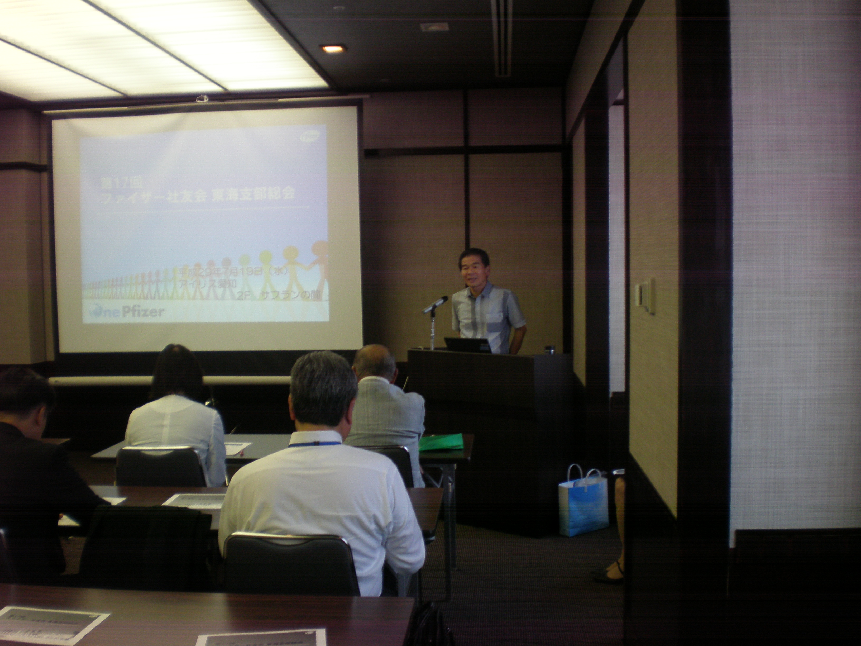 続いて、支店から出席のGIP東海・医薬支店長中嶌寿樹さん、GEP東海・京滋北陸営業部長池田信博さんのお二人からファイザー製薬の現状の説明がありました。