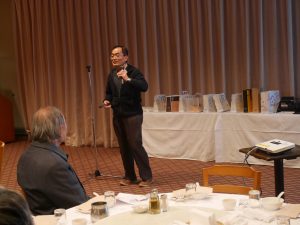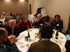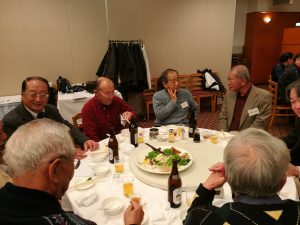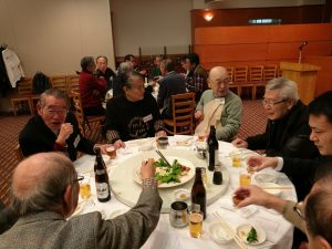 近畿支部新年会が1月13日(土)、神戸三宮の神仙閣で会員39名と現役社員代表として大阪支店から高尾支店長と田村氏の出席を得て総員41名で行われました。初めに昨年末に亡くなられた五郎丸 賢治さん(近畿販売部長など歴任、享年88歳)のご冥福を祈って黙祷が捧げられました。続いて、高尾支店長から、ファイザー社のグローバル及び国内における現況と組織の変更などの説明がありました。世話役の一人、長谷川 信夫さんからは、4年程前から務めておられる神戸家庭裁判所の調停業務から興味深い高齢者の離婚に関する事例紹介がありました。懇親会は小坪 真一郎さんの乾杯の音頭で始まり、その後、中華料理、ビール、紹興酒、日本酒を楽しみながら、お互いの近況、昔話、健康法などを語り合い、いつものように賑やかで楽しい時間を過ごしました。昨年に引き続き今回もビンゴゲームを行い、年齢を忘れ楽しみました。最後はビンゴゲームで1着となり賞品を獲得した高浜 哲哉さんによる中締めをもってお開きとなり、総会(7月、新阪急ホテルの予定)での再開を約し散会しました。