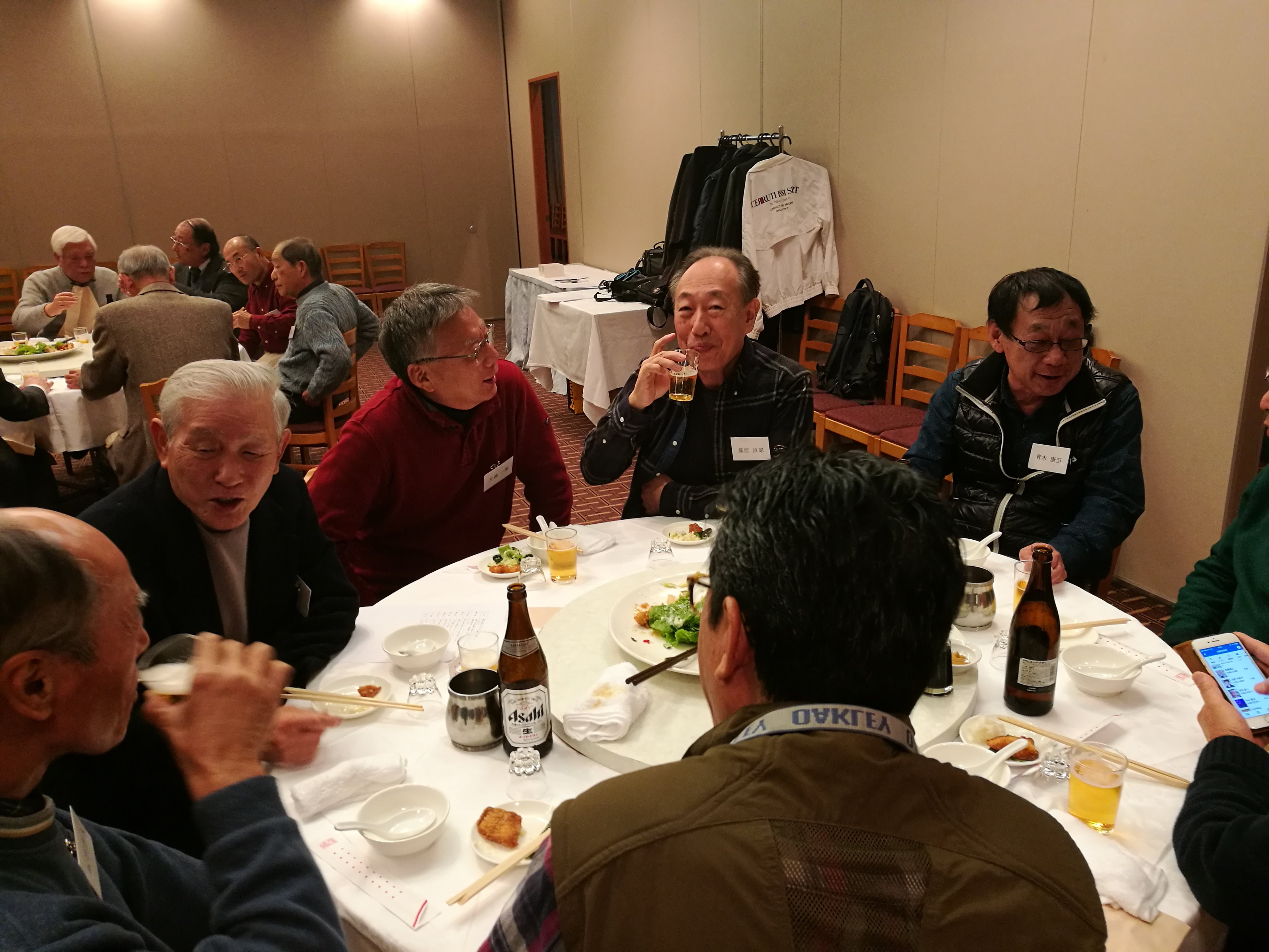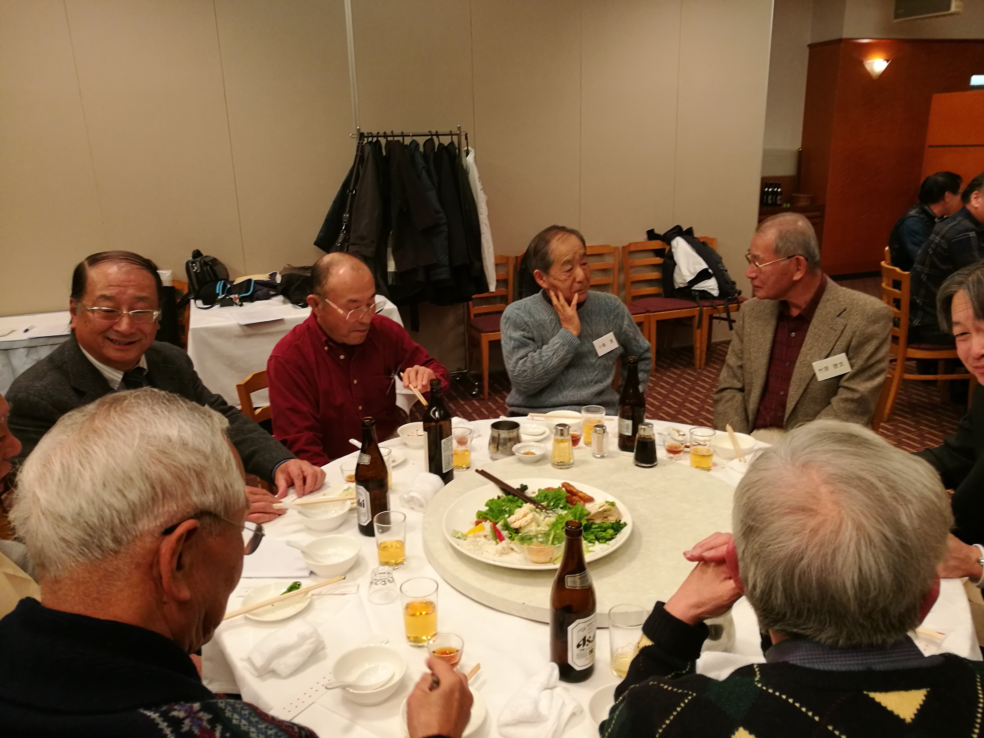 近畿支部新年会が1月13日(土)、神戸三宮の神仙閣で会員39名と現役社員代表として大阪支店から高尾支店長と田村氏の出席を得て総員41名で行われました。初めに昨年末に亡くなられた五郎丸 賢治さん(近畿販売部長など歴任、享年88歳)のご冥福を祈って黙祷が捧げられました。続いて、高尾支店長から、ファイザー社のグローバル及び国内における現況と組織の変更などの説明がありました。世話役の一人、長谷川 信夫さんからは、4年程前から務めておられる神戸家庭裁判所の調停業務から興味深い高齢者の離婚に関する事例紹介がありました。懇親会は小坪 真一郎さんの乾杯の音頭で始まり、その後、中華料理、ビール、紹興酒、日本酒を楽しみながら、お互いの近況、昔話、健康法などを語り合い、いつものように賑やかで楽しい時間を過ごしました。昨年に引き続き今回もビンゴゲームを行い、年齢を忘れ楽しみました。最後はビンゴゲームで1着となり賞品を獲得した高浜 哲哉さんによる中締めをもってお開きとなり、総会(7月、新阪急ホテルの予定)での再開を約し散会しました。