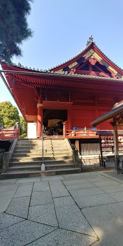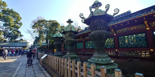名所図会を見ますと壮大な建築物で回廊がめぐらされ、立派な唐風門が建っていました。上野戦争時に、その多くが焼失しました。本殿前に名所図会を拡大した説明板があり、当時の様子がわかって面白いです。広々で環境良好の寛永寺幼稚園隣接しています。