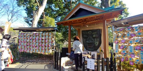 11:08 上野大仏は、寛永8年(1631)建立、元禄11年(1698)伽藍整います。 その後、地震(正保・安政)天保の火災等、災害にあいます。関東大震災ではお顔が落ちてしまう、再建されることなくお体は戦時供出に。 昭和47年(1972)この地にお顔を祀ります。 「これ以上落ちない合格大仏」として信仰を集めています。合格お礼の絵馬も沢山。