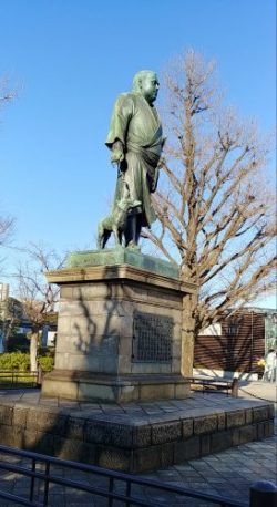 明治31(1898)年建立。高村光雲作、犬のツンは後藤貞行作。