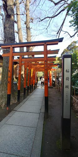 摺鉢山をあとにして、櫻花通りを精養軒方向に歩きますと赤い鳥居が幾重にも重なっているのが見えてきます。