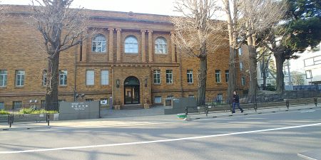 信号を渡ると黒田記念館、日本近代洋画の父ともいわれる黒田清輝は、大正13(1924)年に没する際、遺産の一部を美術の奨励事業に役立てるよう遺言しました。これをうけて昭和3(1928)年に竣工したのが黒田記念館です。赤いレンガの印象的な建物です、その隣が国際子ども図書館。