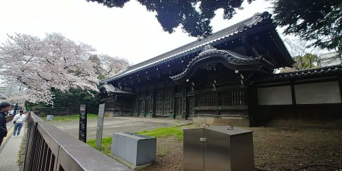 カフェを出て左に進み次を左。上野中学校隣旧寛永寺根本中堂に到着