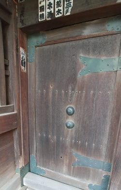 14:25経王寺山門に政府軍の銃撃を受けた弾痕が残っています。