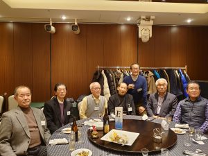 そして、九州支部重鎮のお一人 青木孝司さんの乾杯のご発声で会食が始まり、5台の円卓を囲み、それぞれの卓で自己紹介や近況報告など賑やかに懇親を深められた様子でした。途中、鹿児島からご参加の堀之内好さんによる「相撲甚句」が披露され、更に会場を盛り上げて頂きました。その後も和やかに懇談は続き、あっという間に中締めの時間となり、熊本からご参加の大佐古安則さんが、今年の会友全員の健康と次回の再会を祈念して一本締められました。