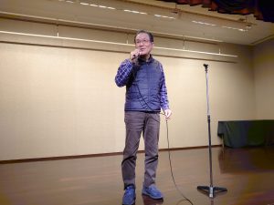 支部長 八尋隆幸さんは開会の挨拶で、近年の自然災害の多さや様々な社会情勢について、また社友会としては会社からの人的サポートが無くなる中で、プロジェクターを寄贈して頂いた御礼と会友による自立した活動への協力、加えて健康長寿が何より大切なことを呼びかけられました。その後、現役の九州支店長 福井宗久さんから、昨年の支部総会時に会友の皆さんから寄付を頂いた「筑紫二十日会」野球部ユニフォームの御礼があり、大会での活躍を誓われました。ファイザー社の現況として、業績は好調であるが、更なる成功のために組織の大きな変化があること、主業務に資源を集中させることになるとの話がありました。