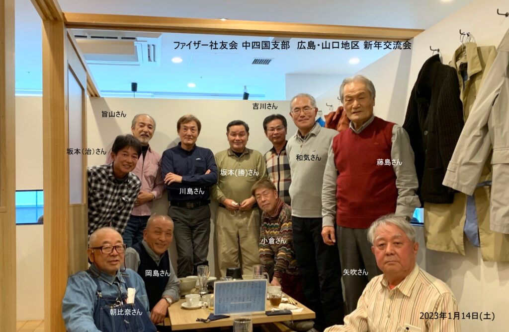 今回、コロナも下火になりかけていましたしコロナ対策も万全に実施出来たことで皆さん喜んで参加されました。コロナ禍でなかなか会っても話もできない状態が続いておりますが、今回新入会員3名の方も参加され昨年の7月の交流会以来の、近況、情報交換、仕事の話などで盛り上がり有意義な新年会となりました。今年の夏にまたお会いしましょうということで散会となりました。(吉岡)