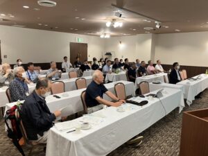 総会終了ののち同施設の懇親会場:宮城野に移り、新規入会者挨拶、旬の食材・地酒を堪能しながら、着席形式でしたが各テーブルを皆様それぞれ移動されて思い出話や近況についての話に花が咲いておりました。会場の制限時間を30分ほど延長しての盛会となりました。次回行事等への参加を楽しみにしながら皆様帰路に就いた次第です。