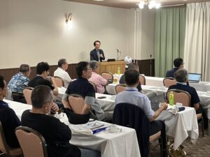 能島副支部長の開会挨拶を皮切りに総会がスタートしました。石井会長が欠席のため代理で星野副支部長が支部長挨拶を代読されました。開催できなかった3年間の物故会員3名様への黙祷、新規入会者17名の紹介、総会初参加者9名の紹介、喜寿会員になられた方の紹介と滞りなくすすめられました。次に馬場副会長様より、コロナ禍の3年間の社友会の現状・社友会会員への行事開催への補助金・今後の社友会運営についての提言等をプレゼンいただきました。次に今井常務理事様より企業年金の現況と将来にわたっての年金基金の健全性についてデータを示していただきながらプレゼンいただきました。最後に東北支部より支部活動報告・支部活動計画・会計報告・会計監査を報告いただき、新役員の改選も無事に終了いたしました。