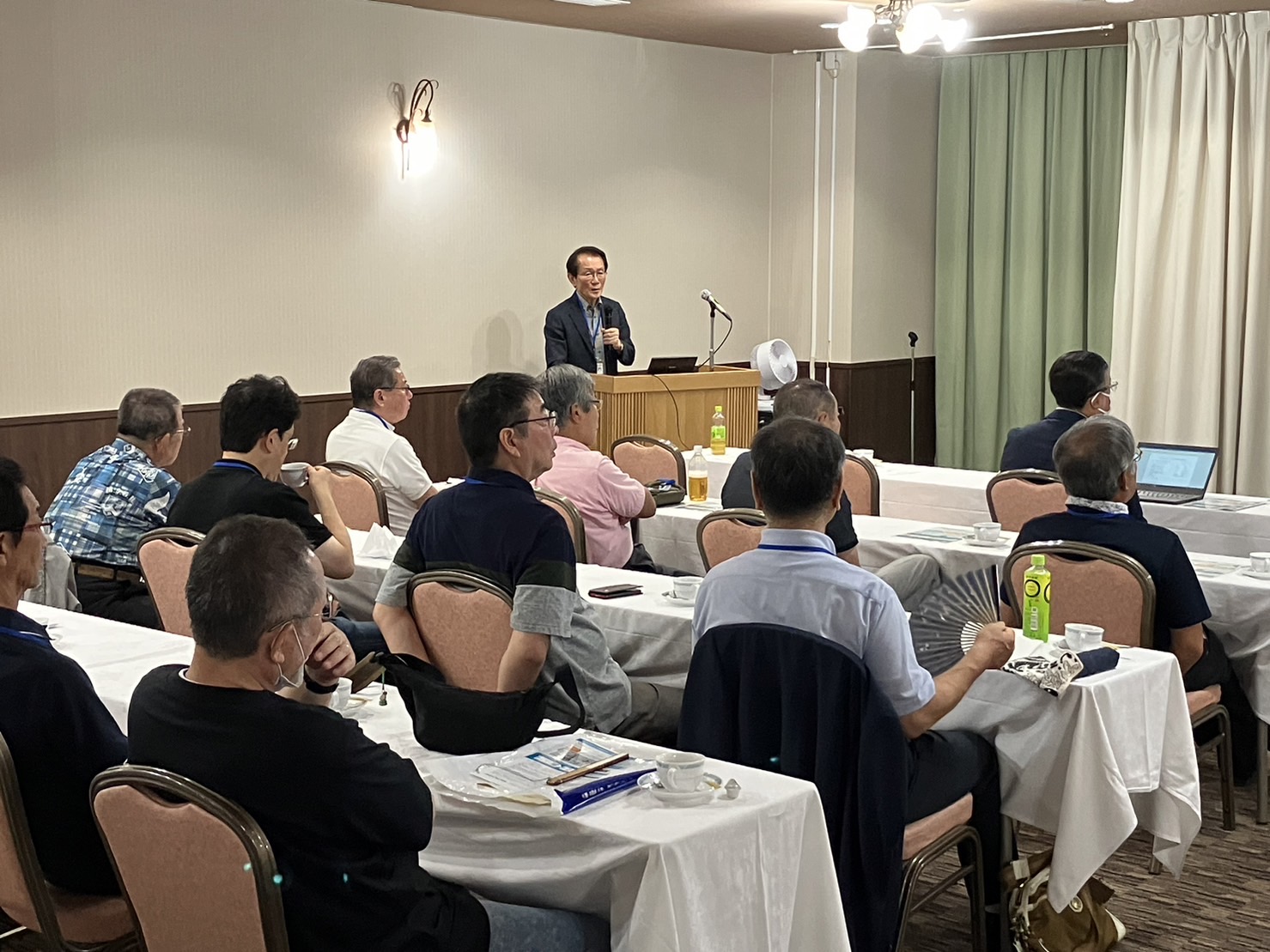 7月8日(土)仙台ガーデンパレスにて、社友会本部より馬場範門副会長・企業年金基金より今井淳一常務理事にご出席いただき、支部会員27名参加しての総会を開催いたしました。2019年の開催よりコロナ禍のため3年間は中止を余儀なくされたので、今年度の開催は感慨深いものとなりました。ただ今回の開催にあたっても、コロナ関連で石井会長もふくめ3名の方が欠席、当日の災害級の降雨により1名の方が欠席となりましたのは残念でした。