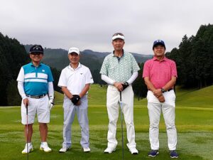 開催日は9月20日、天候は曇りで30℃、湿度は高かったもののプレーしやすいゴルフ日和となりました。参加者は12名で、九州からは福岡県をはじめ、熊本県、鹿児島県、そして遠方では兵庫県、東京からも参加いただき、また初参加の方もいらっしゃって、前日の総会に続き大いに盛り上がりました。