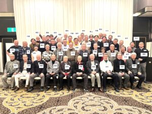 松田茂美支部長の開会のご挨拶の後に、この度めでたく米寿を迎えられました早野正彦様と柴田博晶様に記念品が手渡され、我々も是非お二人に肖りたいと願いながら参加者全員で 盛大な拍手でお祝いを致しました。