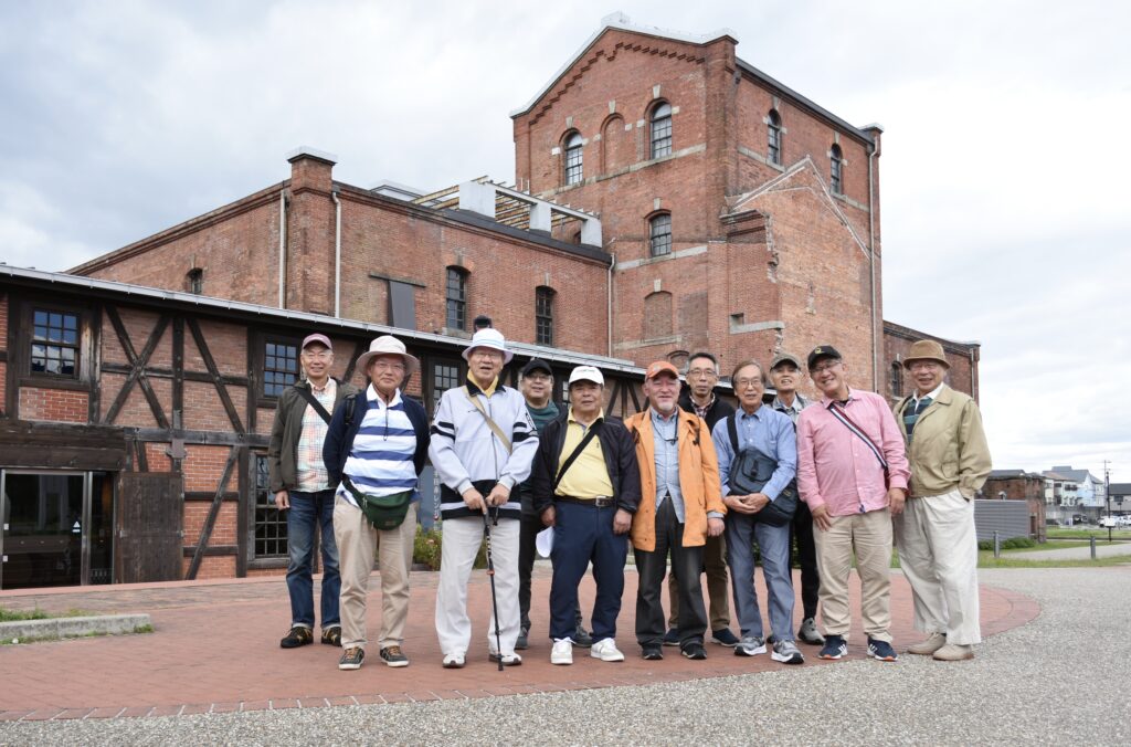 散策は、明治時代に本格ドイツビールの製造工場として建てられた赤レンガ建物からとなりました。散策開始直後から、多くの参加者は昭和18年に生産終了した「カブトビール」の復刻版を味わいました。