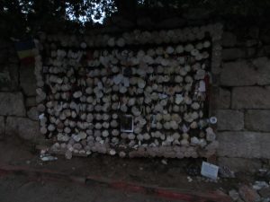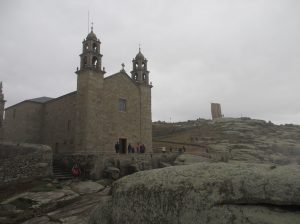 道をどんどん登り、更に階段を登りきると広場に出た。その先に礼拝堂があり、その奥に岩が積まれていた。岩の上でヤコブがスペインで初めてキリストの教えを説いたといわれる。