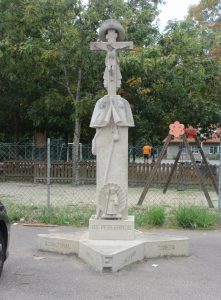 まだ真っ暗な朝8時前にエルボン修道院を出て、2km歩き、夜が明けたパドロンの町に着いた。サンティアゴ教会に入ると「ヤコブ伝説」に纏わる像や絵画が見られた。サール川の橋向の袂にある塔を持った建物がサンティアゴ教会。こんな目立たぬ建物だったので、教会に焦点を絞った写真を撮り損ねた。橋のこちら側にカルメの泉の背面。