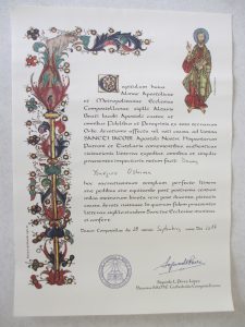 巡礼オフィスはカテドラルの南側から北側に移転していた。午後1時半ごろオフィスを訪れたが巡礼者を応対する大部屋の入口から廊下に長蛇の列がつくられ、列の最後尾は中庭に出ていた。巡礼で忍耐力が鍛えられたのか、長い待ち時間に苛立つような巡礼者はいなかった。2時間近く待たされて、やっと大部屋に呼び込まれた。クレデンシャル(巡礼手帳)を提示して、コンポステーラ(巡礼証明書)が渡された。カウンターには確か20人の巡礼者と同時に対面できるように番号が付けられていたが、現に巡礼者と対面してたのはたったの5つのカウンターだった。小生に3,4分時間を割いたので多分150人ほどの列だったのだ。こうして苦労して入手したコンポステーラ、紙ぺらではあるものの有難く、クレデンシャル、四国遍路の納経帳と共に小生の棺桶に納めてもらっても悪くないなと思った。
