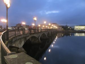 サール川の橋のサンティアゴ教会側からの眺め。真向いにカルメ修道院。外観は立派だが朽ちている。橋の右にカルメの泉。修道院の裏にサンティアゴの丘がある。