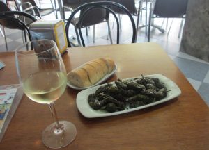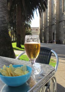 セント・トーマス教会の広場のテーブルでビールを飲む。カルダス・デ・レイスではビールを頼むとポテトチップスがつまみとして添えられてきた。バルで極めて簡単な夕食だが、小生のお気に入りのピミエントス・デ・パドロン。