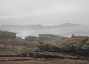 眼の前に荒波が迫ってきてムシーアがまさに地の果て(フィステーラ)に思われた。荒海に向かって殊勝なことに若い女性が座禅を組んでいた。