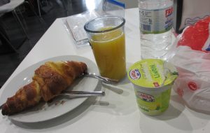 アルカデのバルで昼食。クロワッサンとオレンジジュース(スモ・ナトゥラル・デ・ナランハと注文するとオレンジを搾ってくれた。)がいつもの簡単なメニュー。