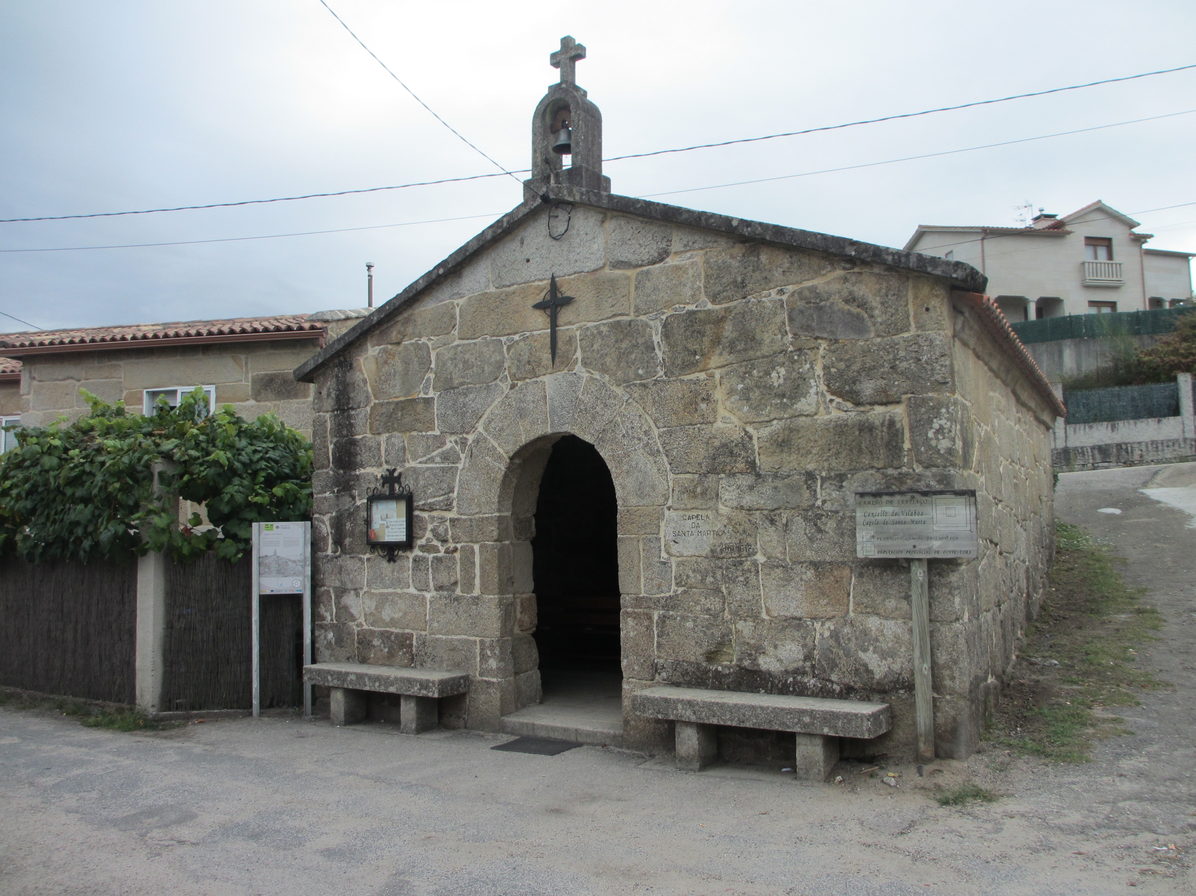 ポンテベドラのエリアに近づくとサンタ・マルタ礼拝堂があった。1617年と刻まれていた。看板にガリシア語とスペイン語で説明があった。