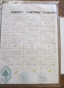 午後4時ごろアルベルゲがオープンした。ガリシア巡礼協会のボランティアによって運営されている。受付のデスクにスペイン語、英語、ドイツ語の時間表が張られていた。「18:00修道院見学、20:00ミサ、20:30夕食、22:30休息、アルベルゲ戸締り、7:00起床、朝食、8:00出発、よい旅路を」20ユーロを受付の募金箱に入れた。