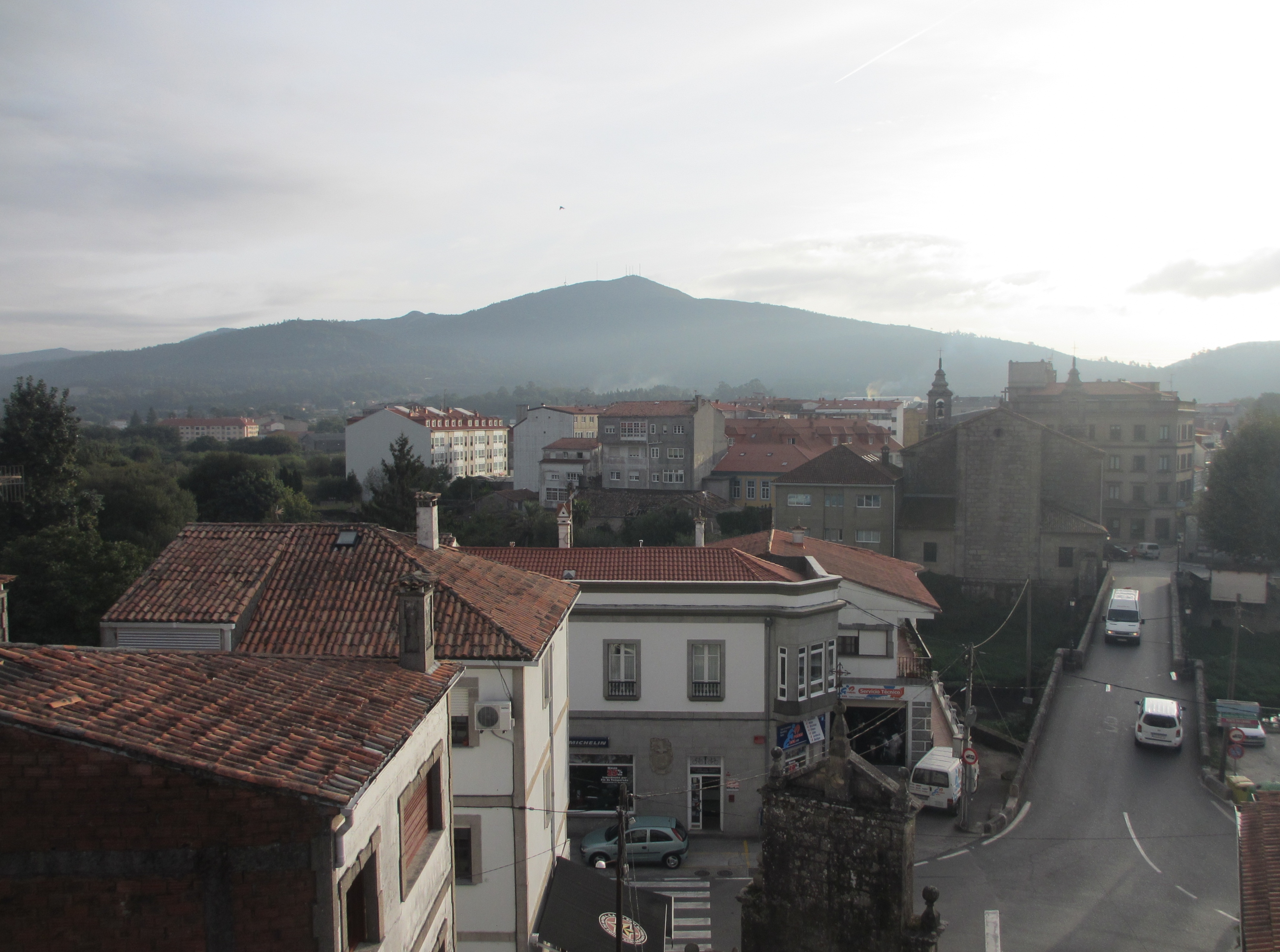 カルダス・デ・レイスの町に午後3時近くに着いた。歩いてきたカレテラ(国道)でウミア川を渡り、左に曲がりサルガド通り、レアル通りを進み、ウミア川の支流ベルマーニャ川に架かるローマ橋を渡った。アルベルゲはこの橋の左側にあった。アルベルゲの建物は古く、共用スペースもなく居心地がよくなかった。写真のひとつは、泊まった部屋の窓から撮ったもの。
