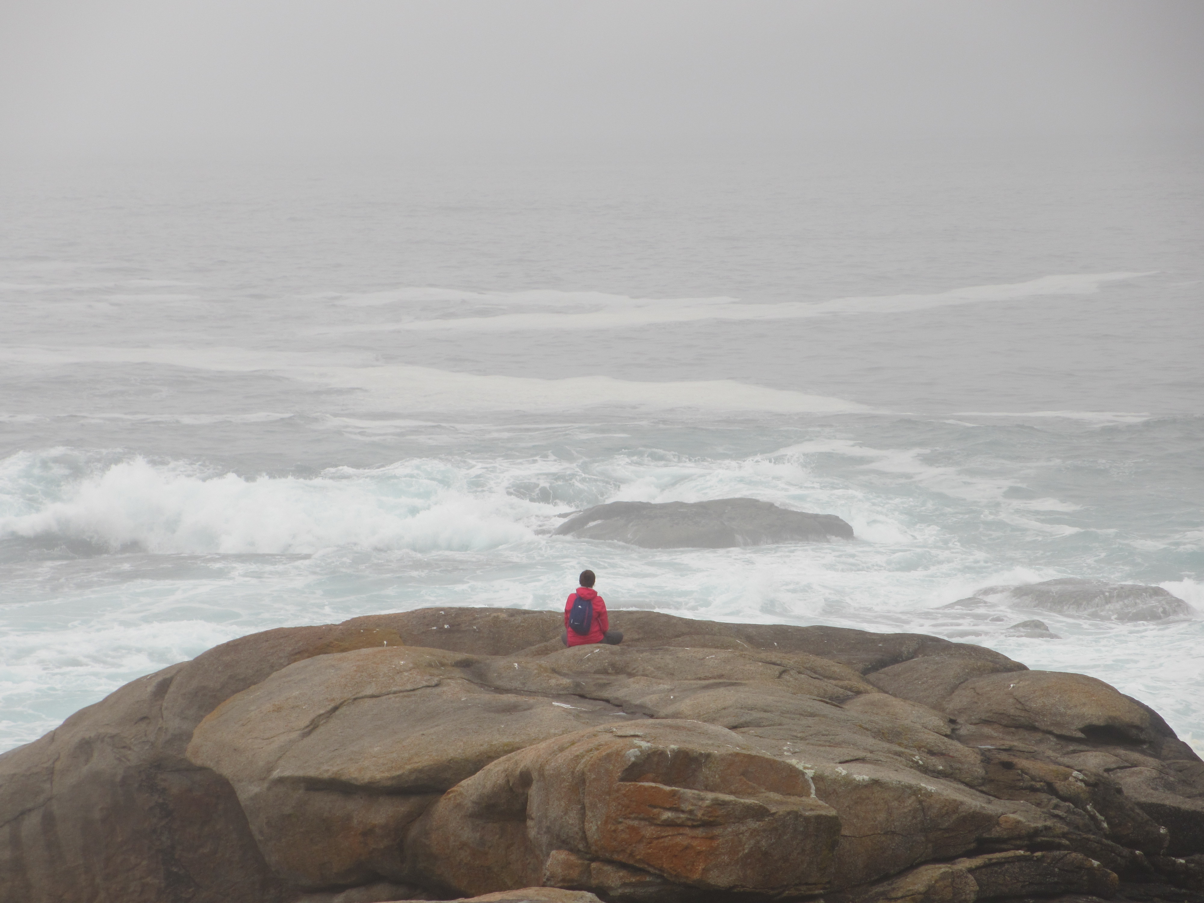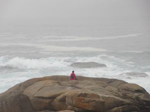 眼の前に荒波が迫ってきてムシーアがまさに地の果て(フィステーラ)に思われた。荒海に向かって殊勝なことに若い女性が座禅を組んでいた。