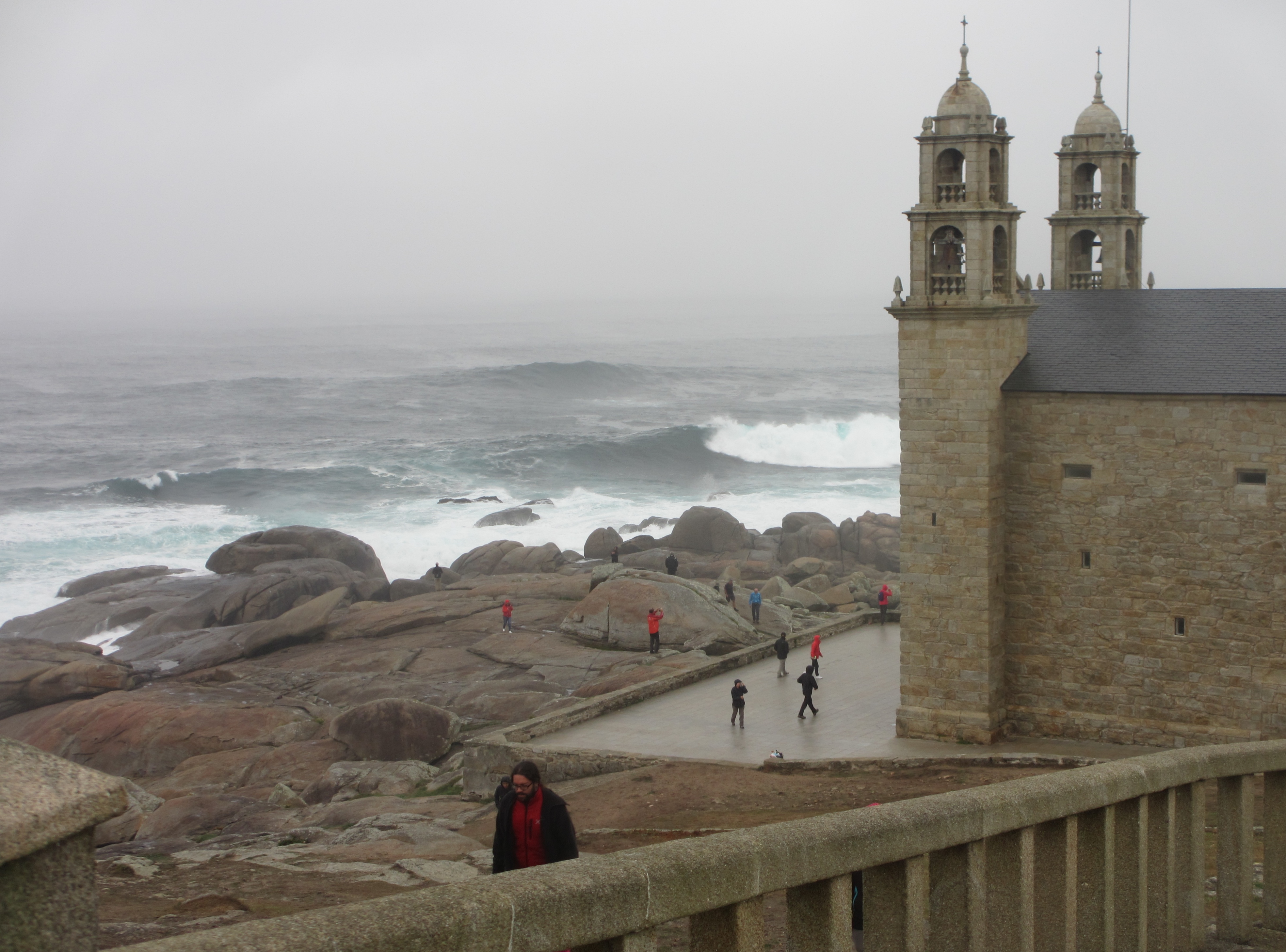 舟の聖母教会(Santuario da virxe da Barca)。2013年のクリスマスの日にこの教会に雷が落ちて火災に遭った。その後再建されたので新しい建物なのだ。海面に近くに建っているので2014年1月に高波にも襲われている。